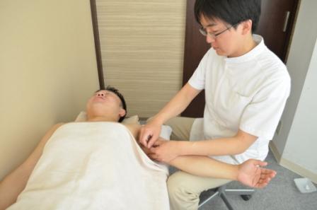 例えば『肩』。腕を上げると肩の上の方が痛いという場合にも、手や脇周りにも鍼を打つことがあります。