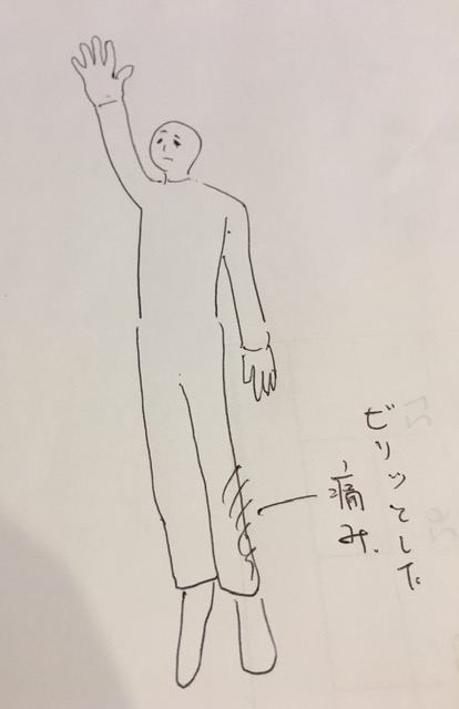 歩行時にその後より太腿外側、スネに痛みを感じるようになった。
