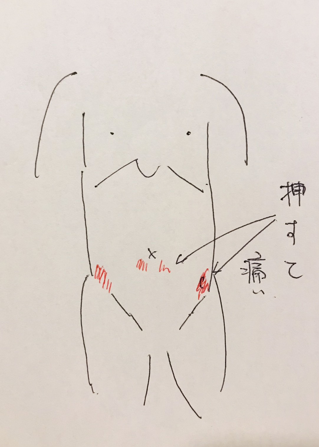 腰痛で特徴的なのが、お臍の下、鼠径部付近に筋肉の緊張が出ている方が多いです。