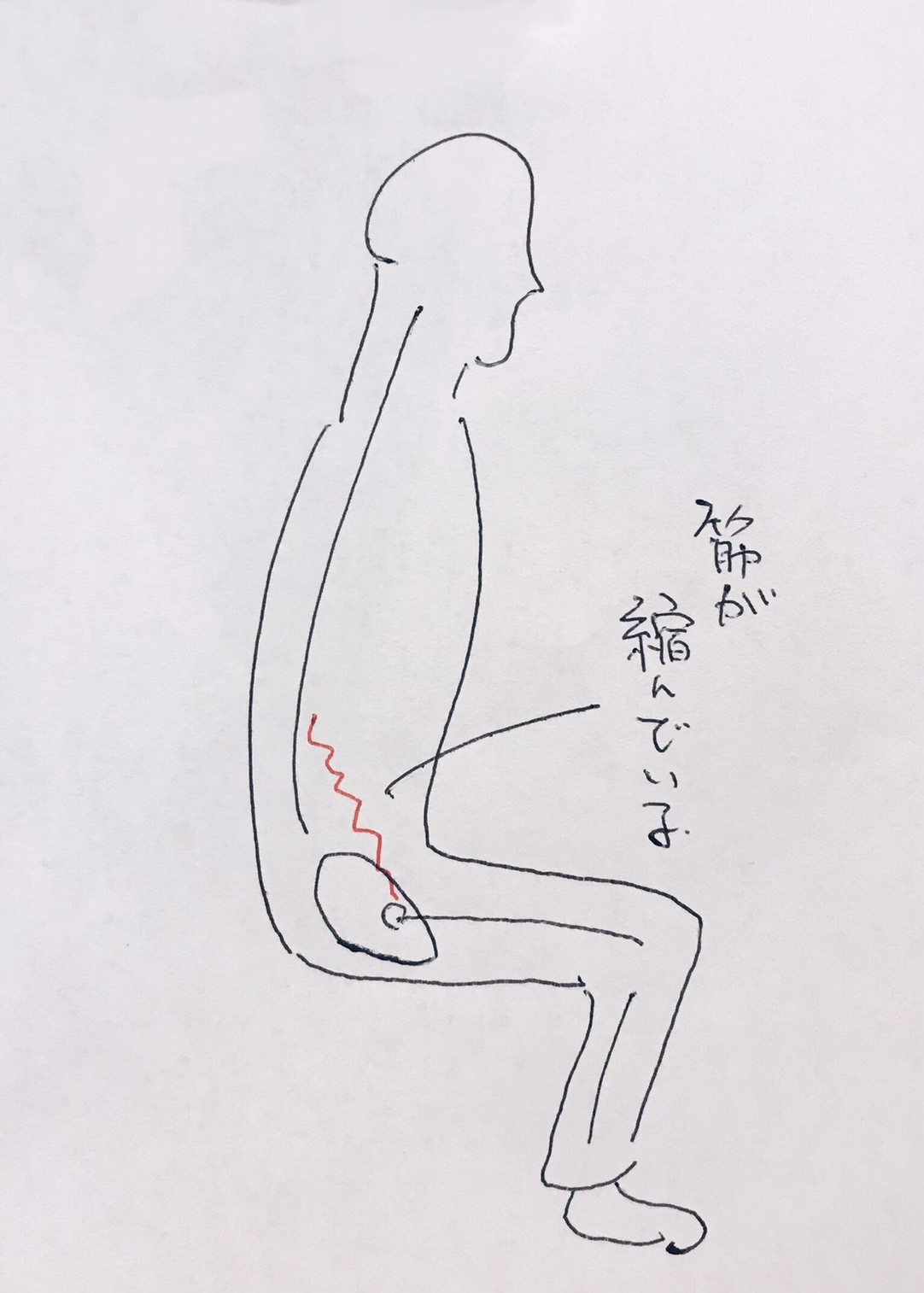 椅子に浅く座り腰を丸めた姿勢だとより筋肉が収縮し硬くなります。