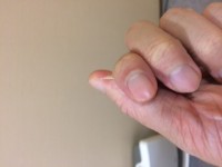下の写真はお灸を、米粒の半分ほどに三角錐上に捻り、灸点紙の上で燃やしているものです。
