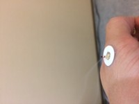 皮膚上で直接燃やすと、痕がのこりかなり暑いので、灸点紙というシールを貼ってそのうえでモグサを据えることが多いです。